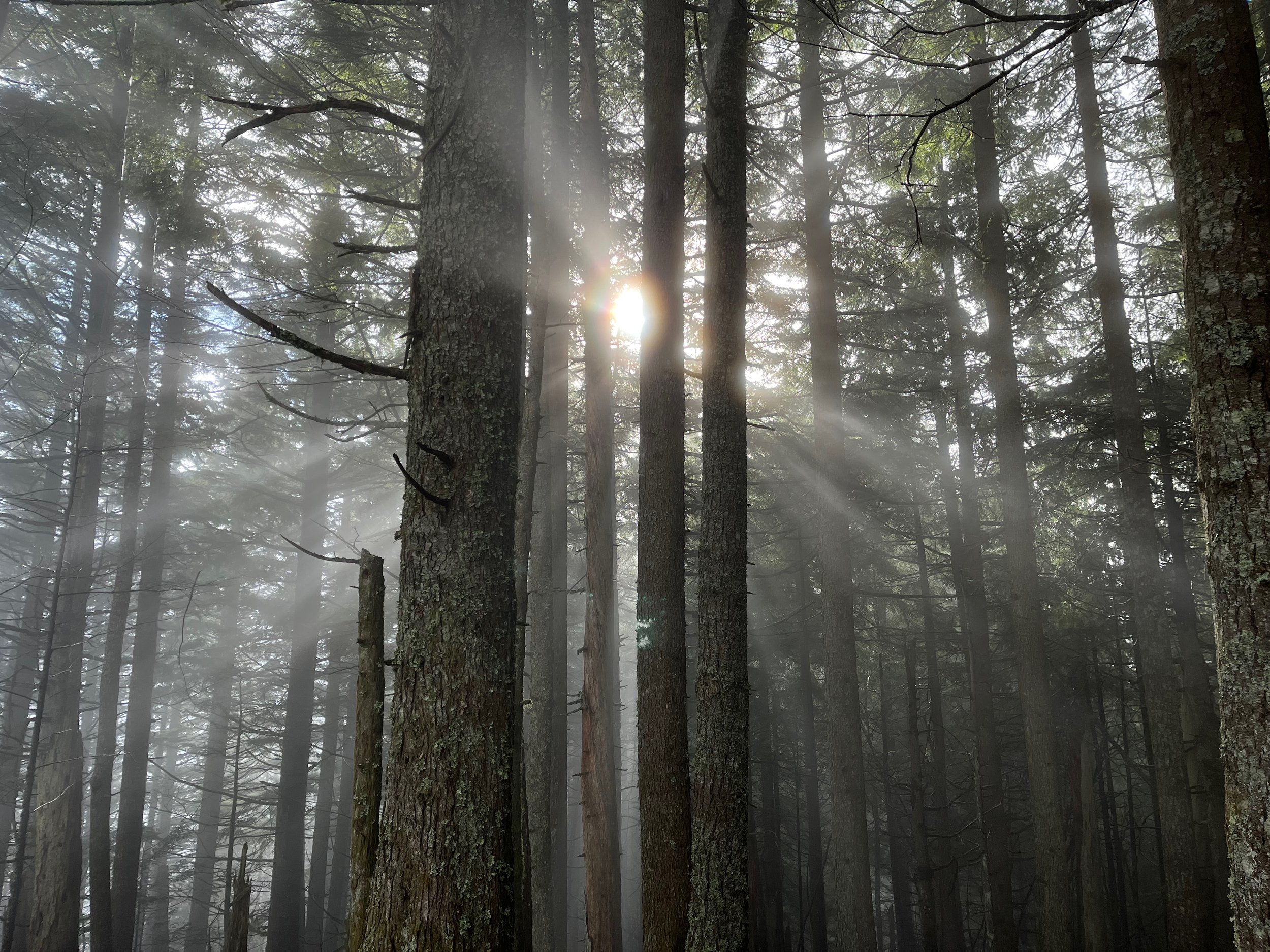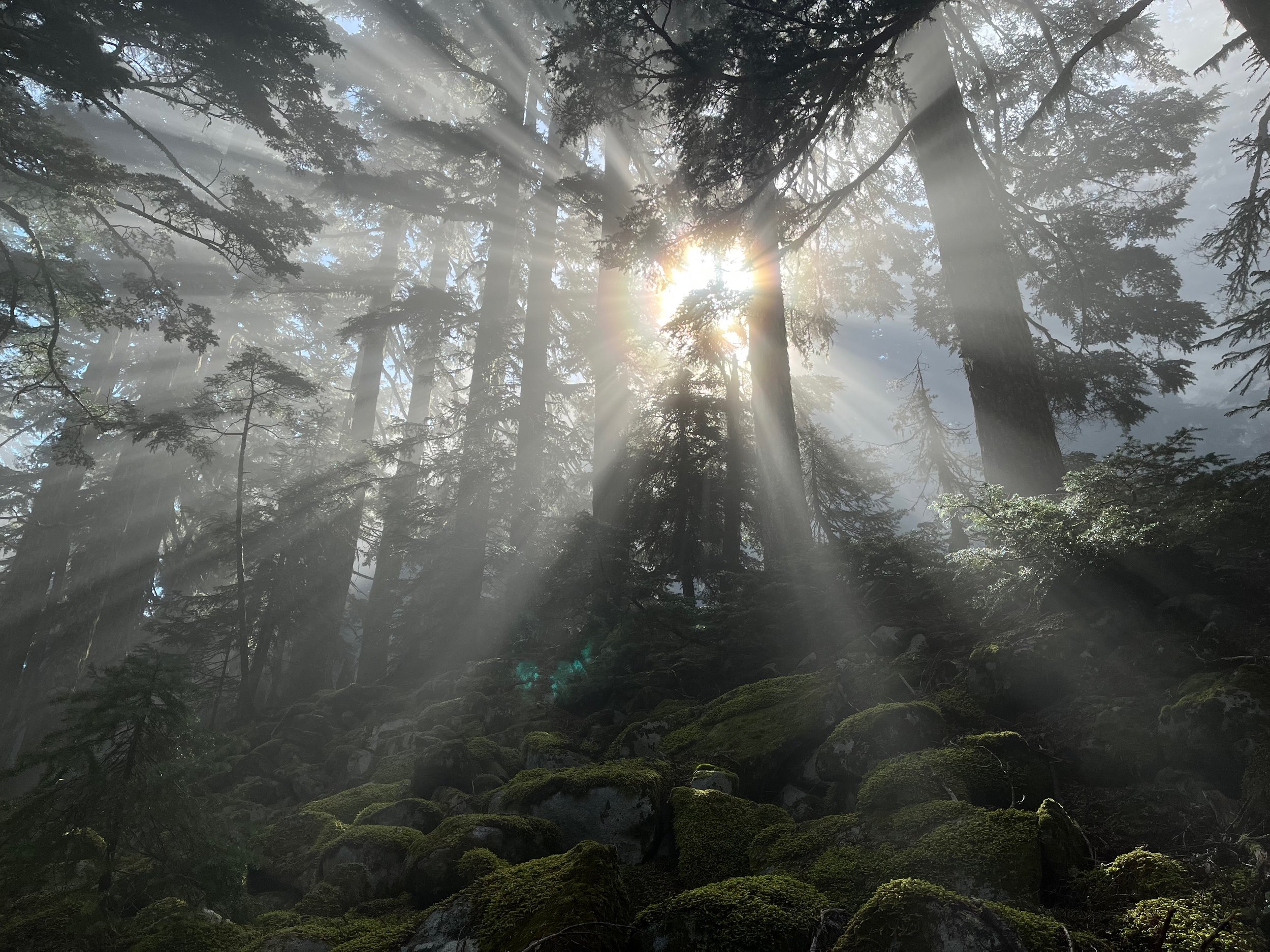 I love long hikes — and delight in moments when sunlight breaks through mist between the trees. That sense of emergence, of possibility revealing itself, is one I recognize often in this work.